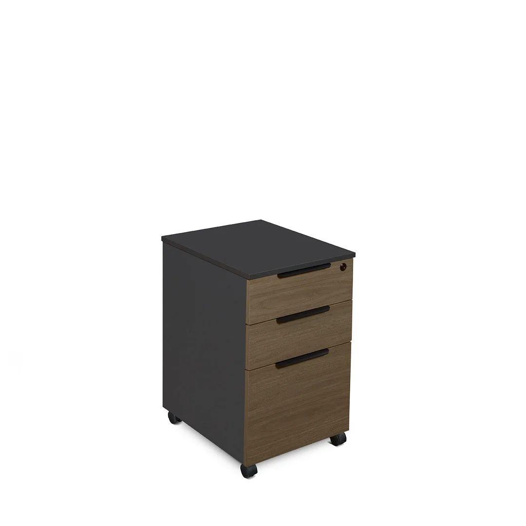 Archivo modular EXCEDE laminado de 0.50m x 0.41m con gavetas y respaldo color cafe y tope y laterales color gris con 2 gavetas auxiliares y 1 gaveta tipo archivo.