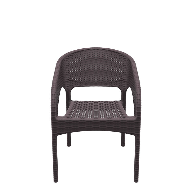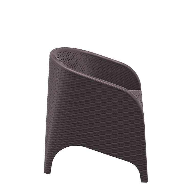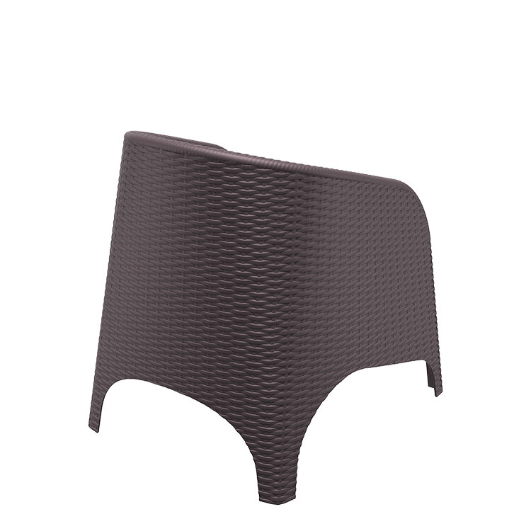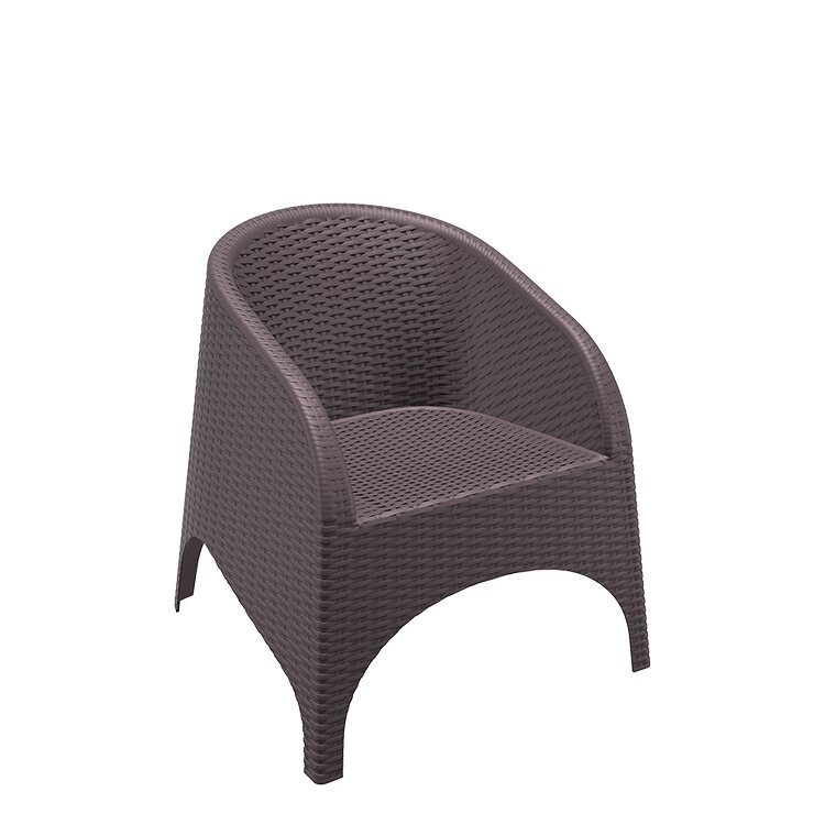Sillón ARUBA color MARRON, hecho de resina reforzada con fibra de vidrio duradera y resistente a la intemperie. Marco no metálico. Proteccion contra rayos UV. Para uso en interiores y exteriores.