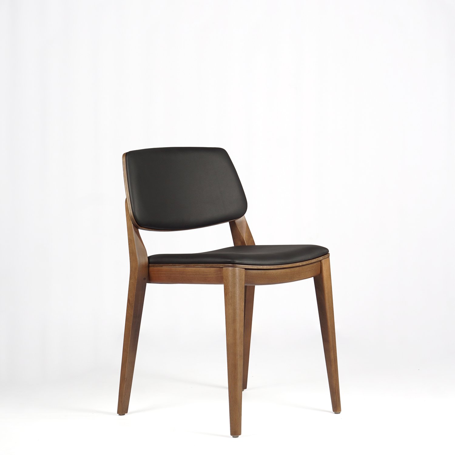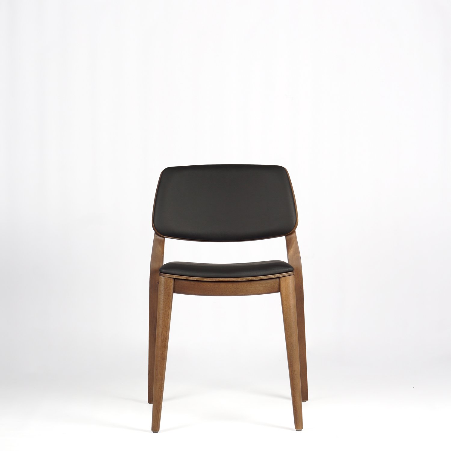 Silla CAXIAS en madera color CAPUCCINO y asiento en piel sintética color NOITE.