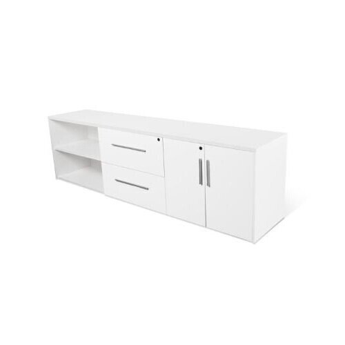 Credenza EXCEDE Blanco 2.40m con puertas, gavetas y tramos