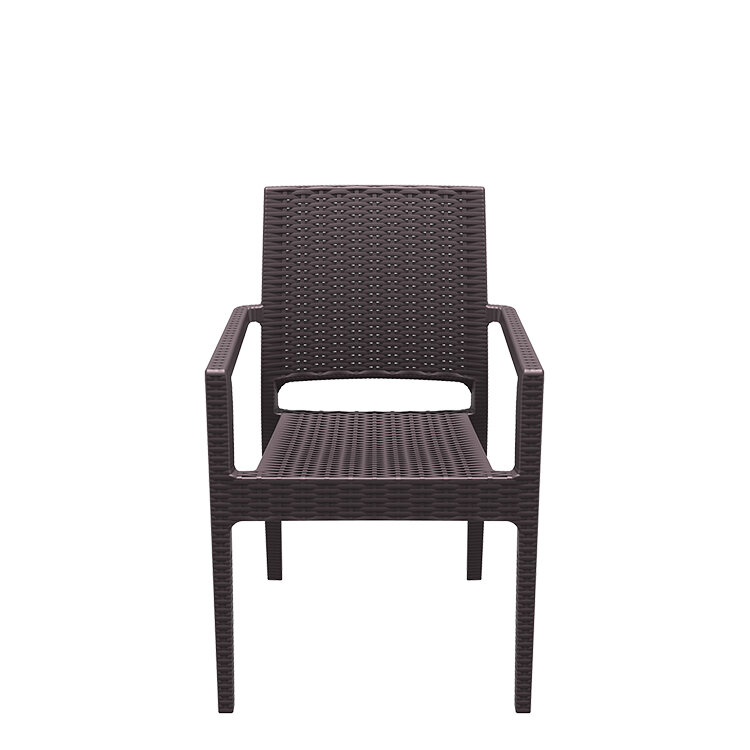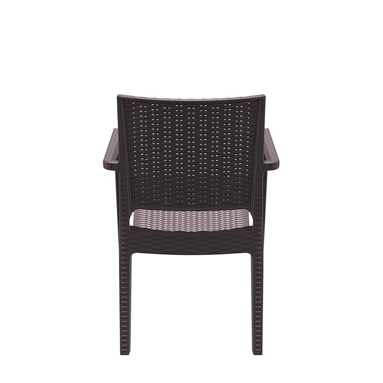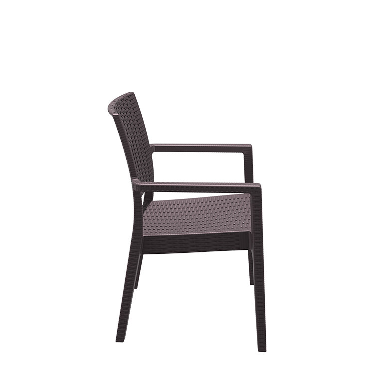 Sillón IBIZA color MARRON, hecho de resina reforzada con fibra de vidrio duradera y resistente a la intemperie. Marco no metálico. Proteccion contra rayos UV. Para uso en interiores y exteriores.