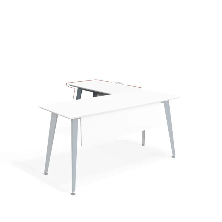 Lateral QUATTRO con tope EDGE de 1.00m x 0.50m x 2.5cm, panel frontal de 0.70m x 0.30m x 1.6cm color SNOW y base metálica color LAGOON.
