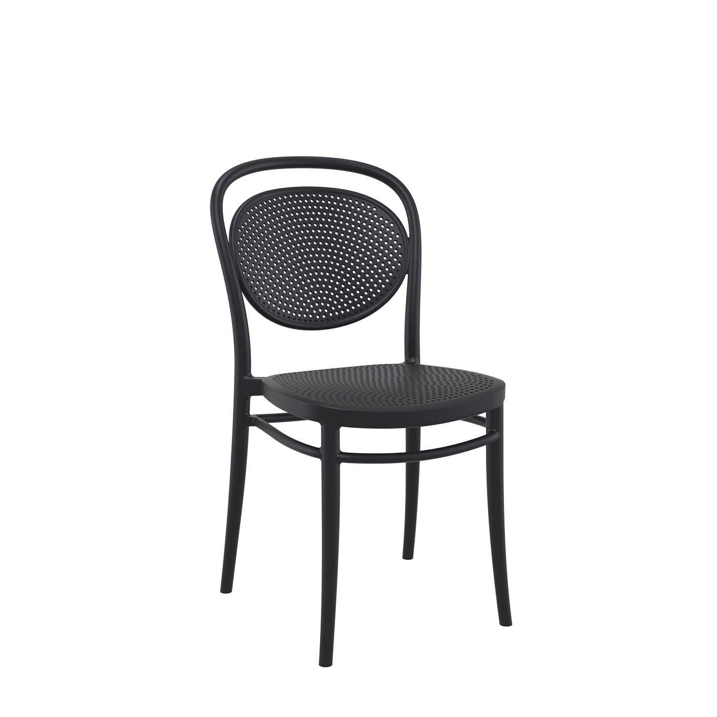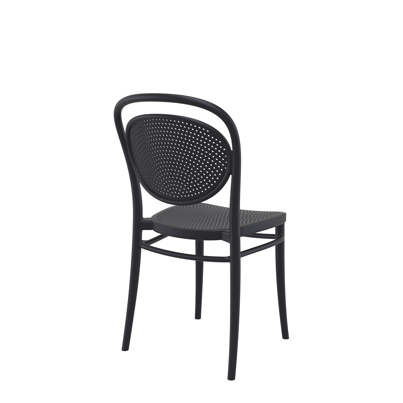 La silla Marcel se produce con una inyección única de polipropileno reforzado con fibra de vidrio obtenida mediante la última generación de tecnología de moldeo por aire con tonos neutros. Para uso interior y exterior, disponible en una variedad de colores.