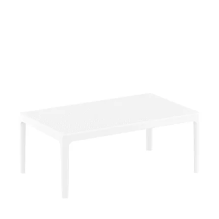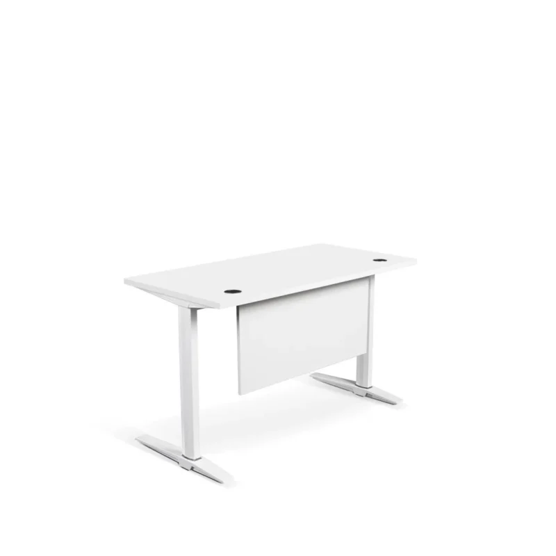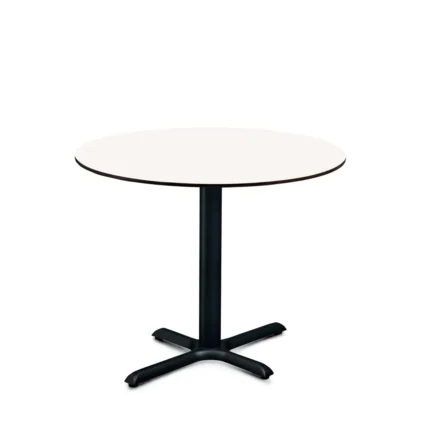 Mesa con patas de plástico con tapas de laminado compacto HPL de 12 mm disponible en blanco y negro. Desarmable.