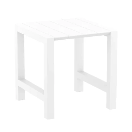 Mesa con patas de plástico con tapas de laminado compacto HPL de 12 mm disponible en blanco y negro. Desarmable.