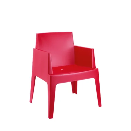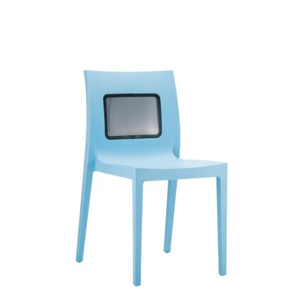 Sillón apilable para uso en interiores y exteriores en tecnopolímero brillante de nailon PA6 o policarbonato transparente. Resistente a rayones, autoextinguible clasificación V2, resistente a los rayos UV. Disponible en una variedad de colores.