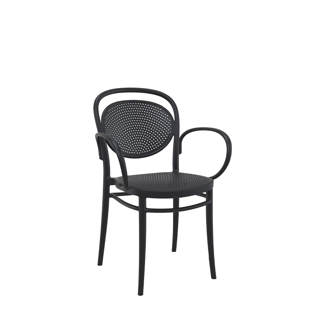 El sillón Marcel XL se produce con una inyección única de polipropileno reforzado con fibra de vidrio obtenida mediante la última generación de tecnología de moldeo por aire con tonos neutros. Para uso interior y exterior, disponible en una variedad de colores.