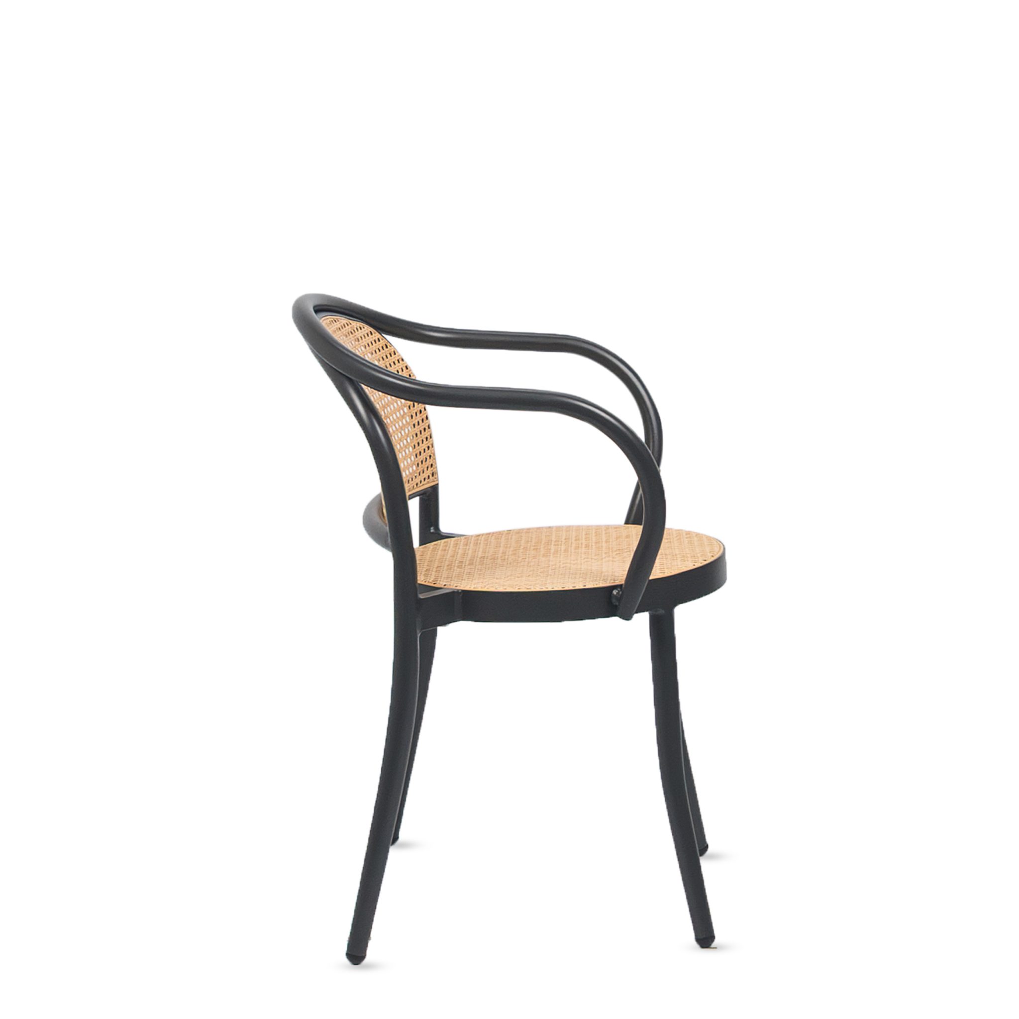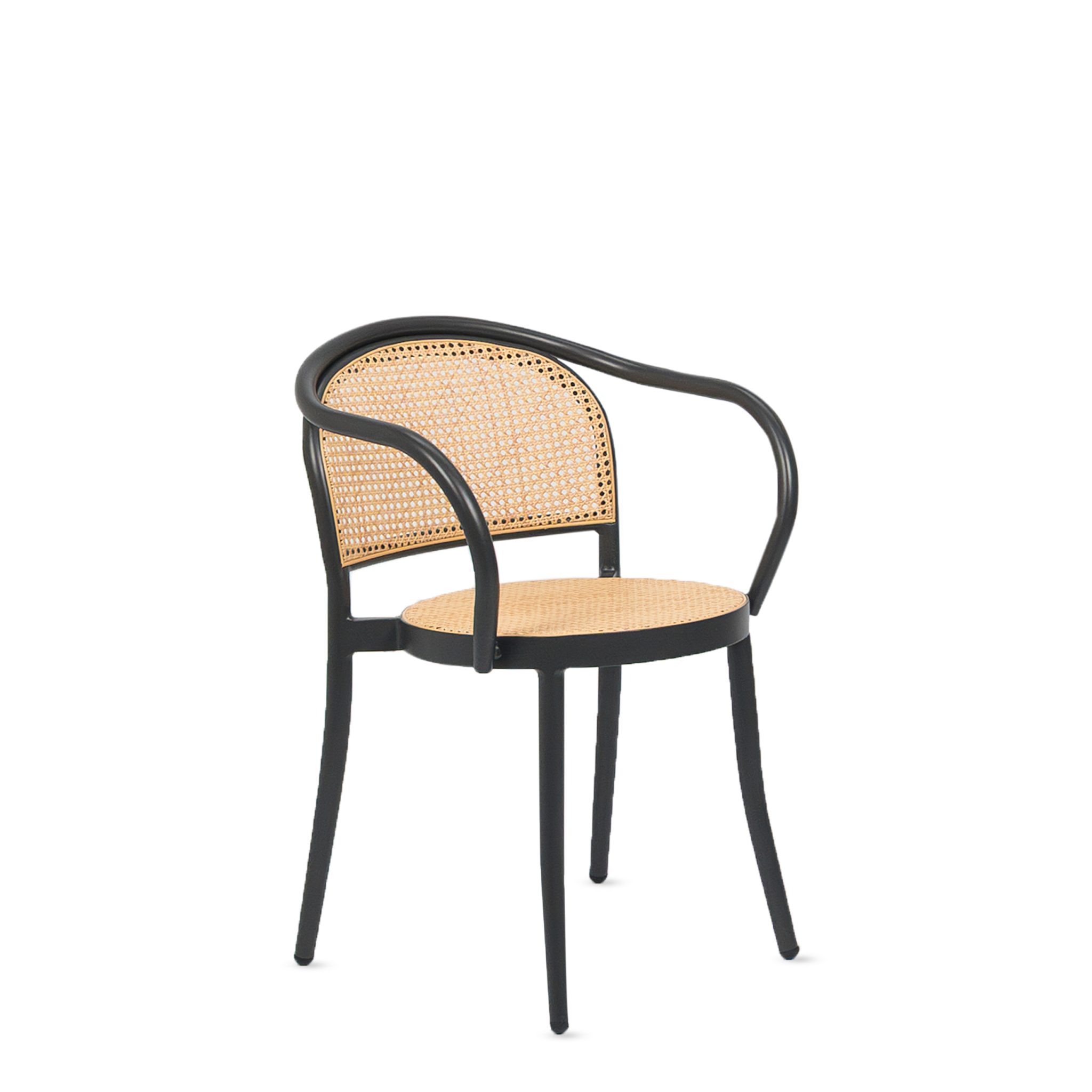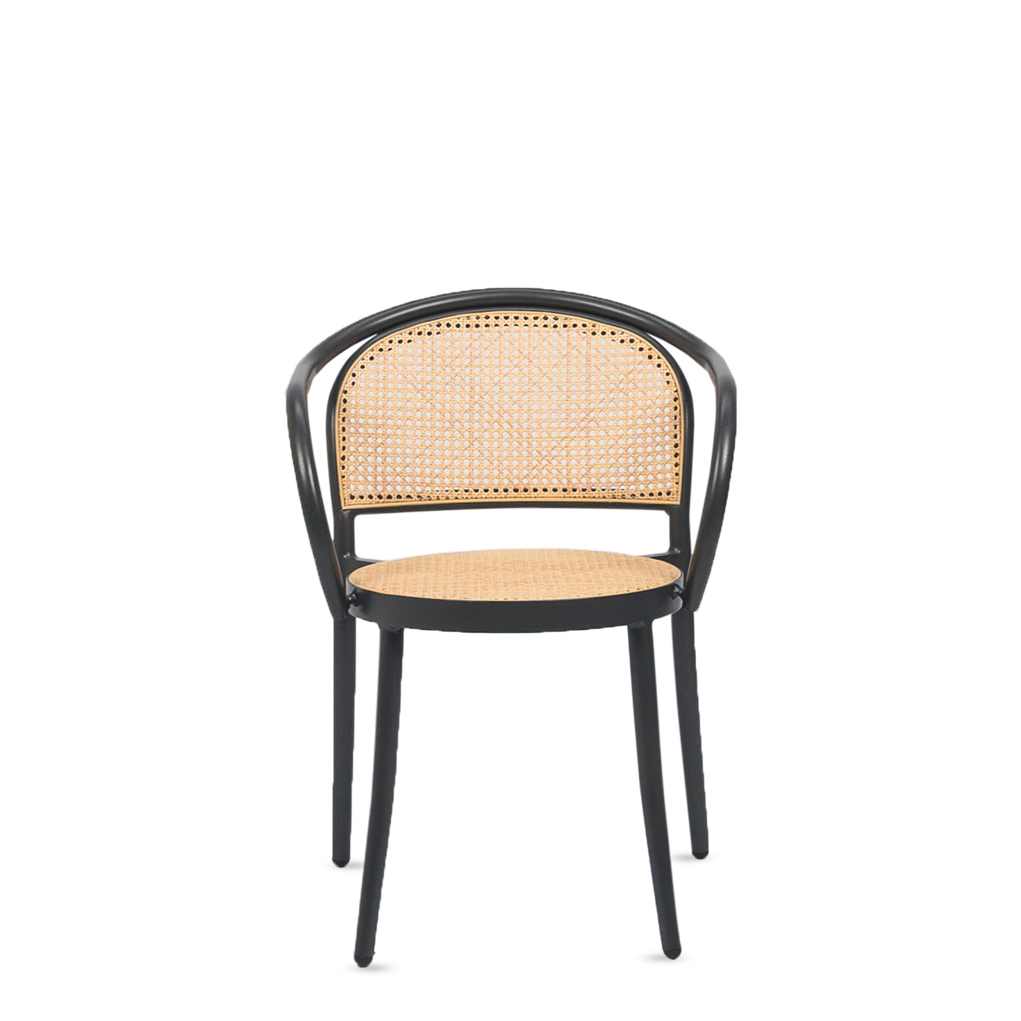 Silla VIENA en asiento y espaldar en malla de ratan con base de aluminio color Negro.