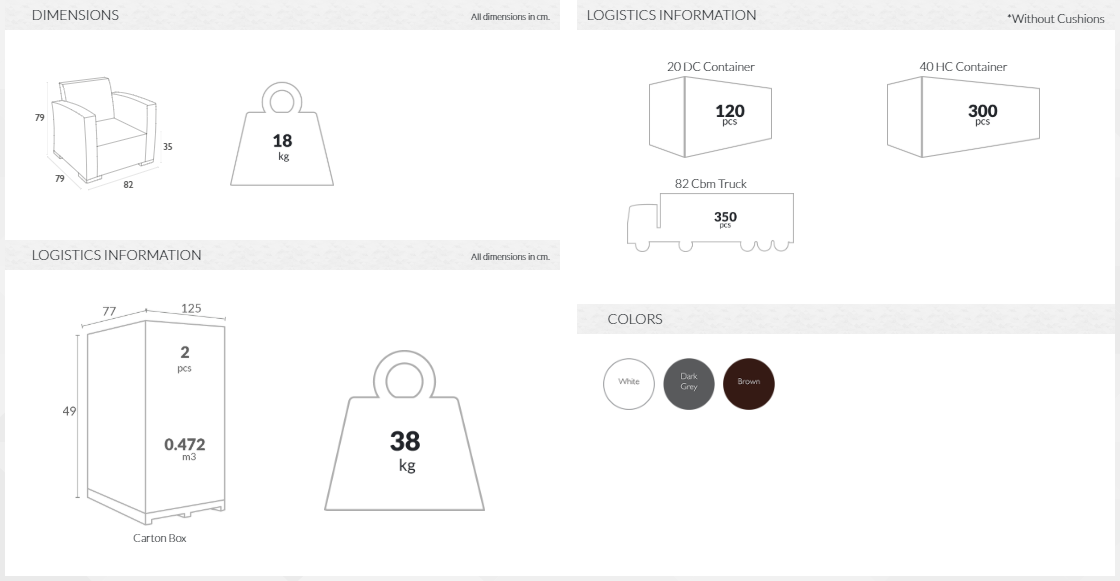 El sillón Monaco Lounge está diseñado para un autoensamblaje fácil, está hecho de resina duradera resistente a la intemperie reforzada con fibra de vidrio. El marco no metálico nunca se desenredará, oxidará ni se descompondrá. Está protegido contra los rayos UV, lo que garantiza que los colores no se desvanezcan. Se puede desmontar. Para uso en interiores y exteriores.